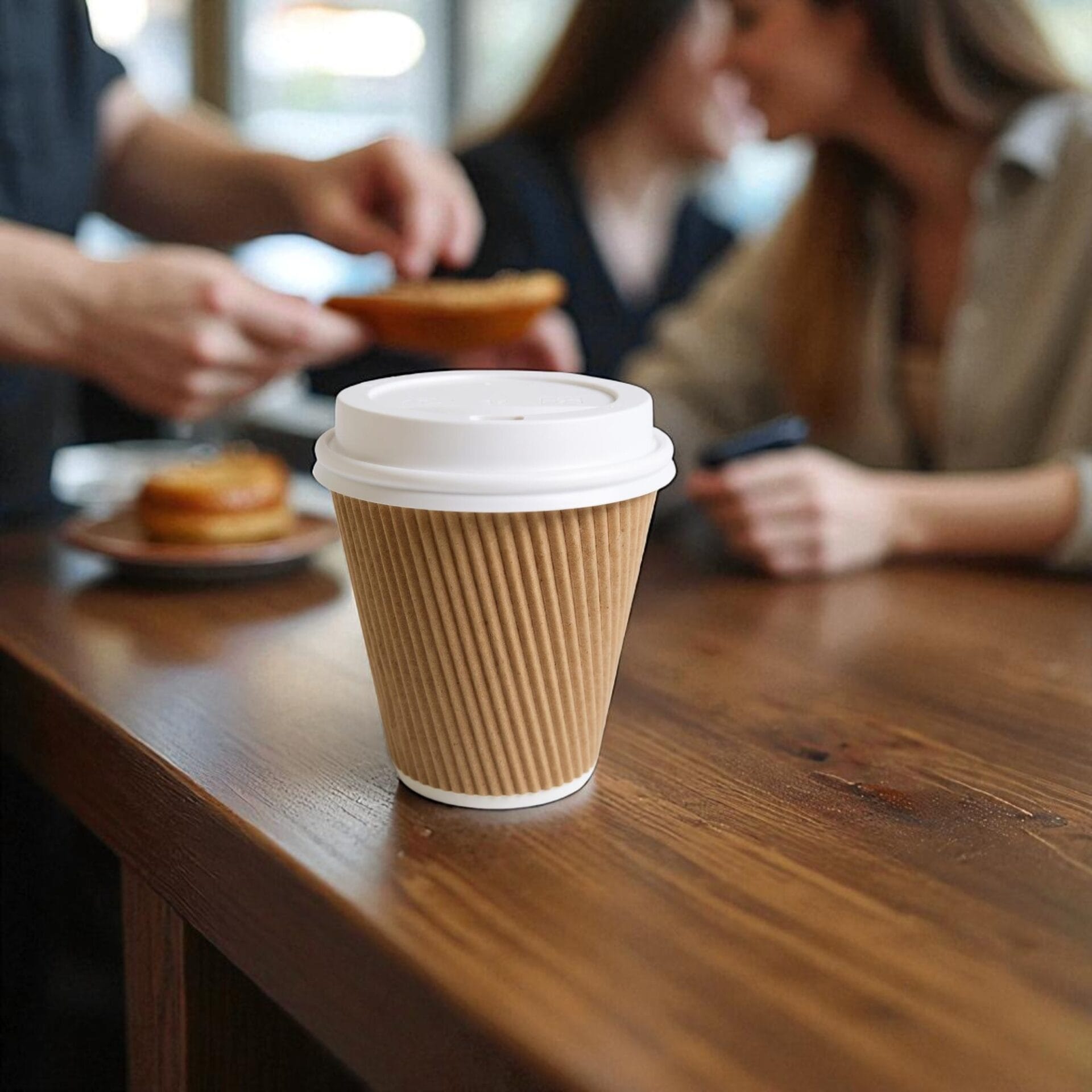 Serve your hot beverages in style with our 12oz ripple coffee cups, complete with secure-fitting lids. Designed with a triple-wall ripple construction, these cups provide superior insulation, keeping drinks hot and hands cool—no sleeve needed. Crafted from high-quality, food-grade paperboard, they are eco-friendly, recyclable, and ideal for serving coffee, tea, hot chocolate, or mulled drinks. The sturdy lids offer a tight seal to prevent leaks and spills, making them perfect for on-the-go service. Whether you’re running a café, catering event, or food truck, these cups are a practical and professional solution for takeaway beverages.