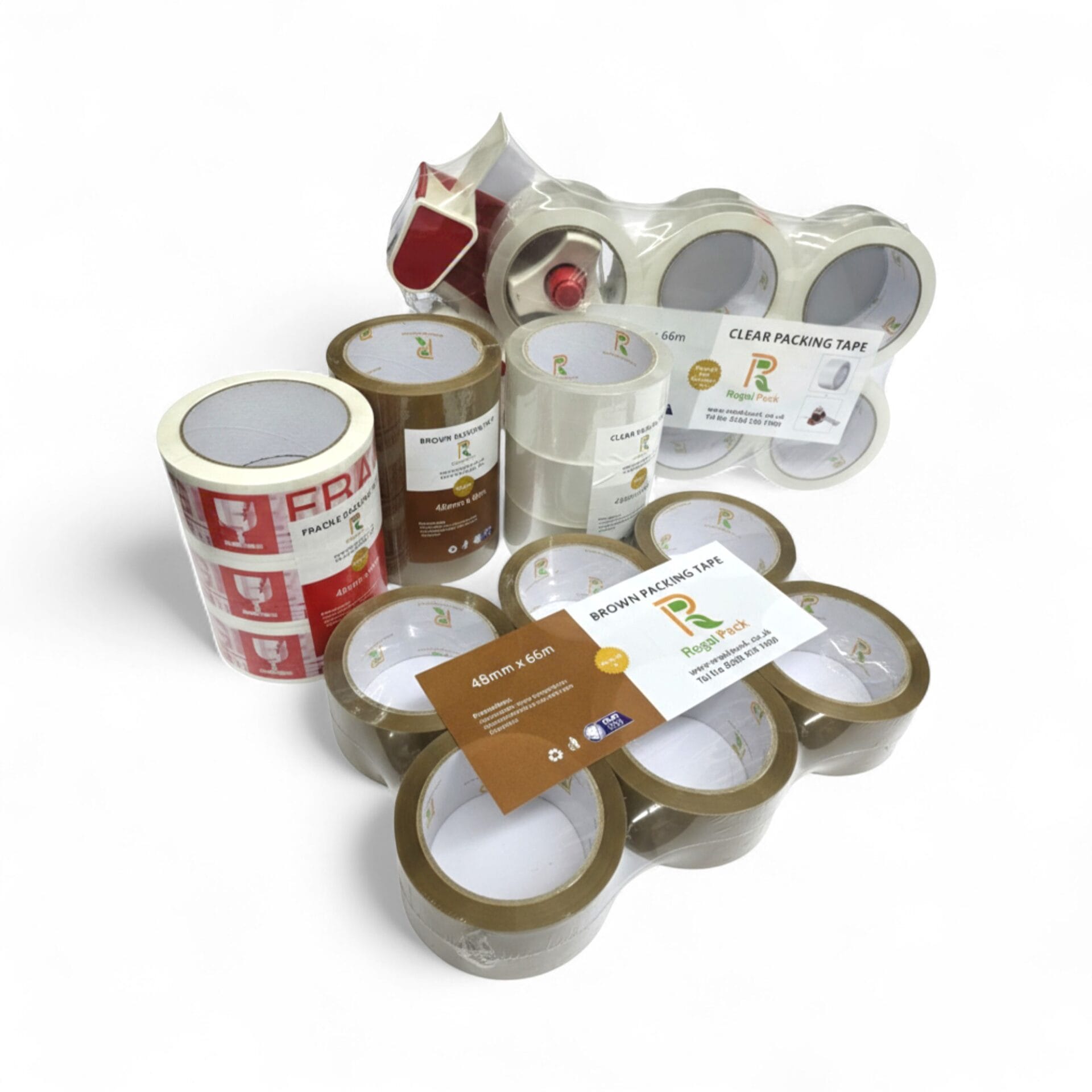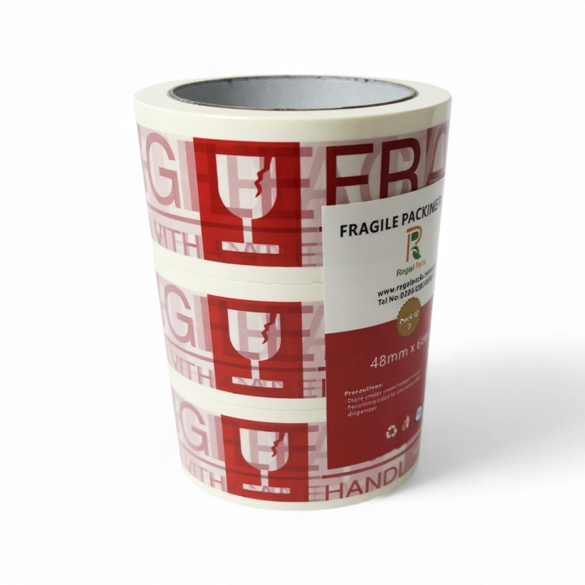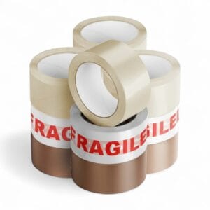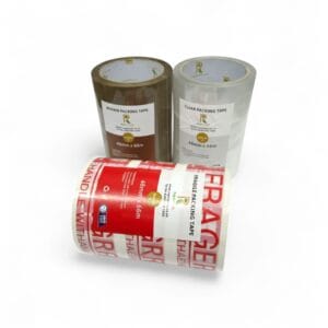 Secure your parcels with our high-performance sealing tapes — a dependable choice for everyday packing and shipping. Measuring 48mm x 66m per roll, these versatile tapes provide strong adhesion on cardboard, paper, and plastic surfaces, ensuring boxes and parcels stay sealed during storage or transit. Available in clear, brown, and “FRAGILE” printed options, they offer both practicality and visibility for all packaging needs.